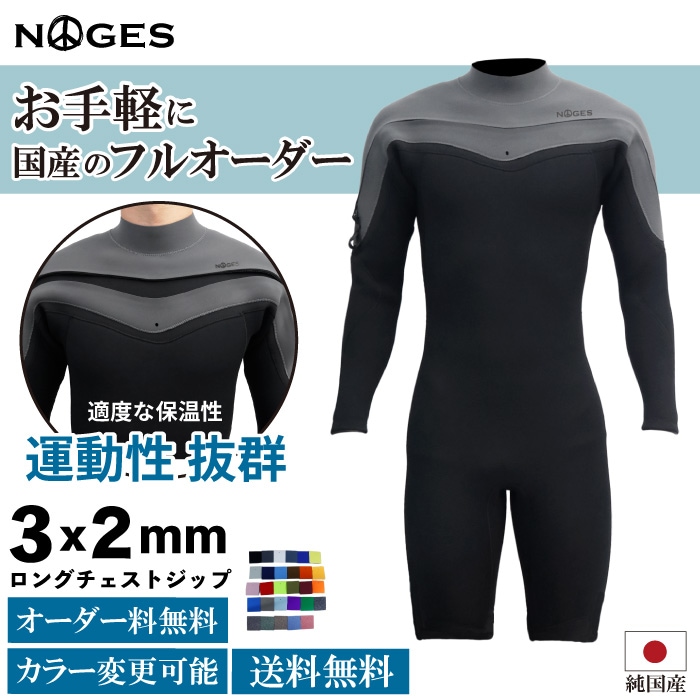 サーフィン ウェットスーツ 3フル NOGES ノージス メンズ LCZ ロングチェストジップ 3mm/2mmフルスーツ 長袖長ズボン ウエットスーツ 春 夏 秋 男性用