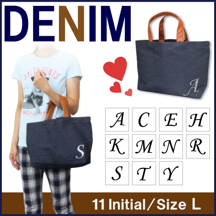 イニシャルバッグ ラインストーン デニム Lサイズ トート エコバッグ バック ポーチ