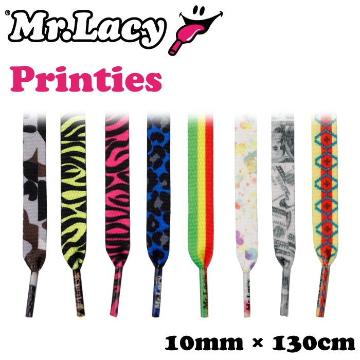 靴ひも シューレース スニーカー用 Mr.Lacy ミスターレーシー Printies プリンティーズ 約130cm 平ひも くつひも カラフル 靴紐 【ゆうパケット対応】