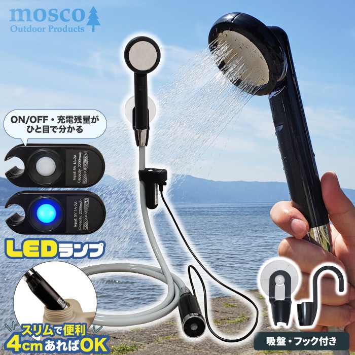 ポータブルシャワー アウトドア 充電式 電動シャワー コードレス 簡易シャワー 携帯用 フック 吸盤 スマートアウトドアシャワー 車 サーフィン 海水浴 便利グッズ MOSCO モスコ