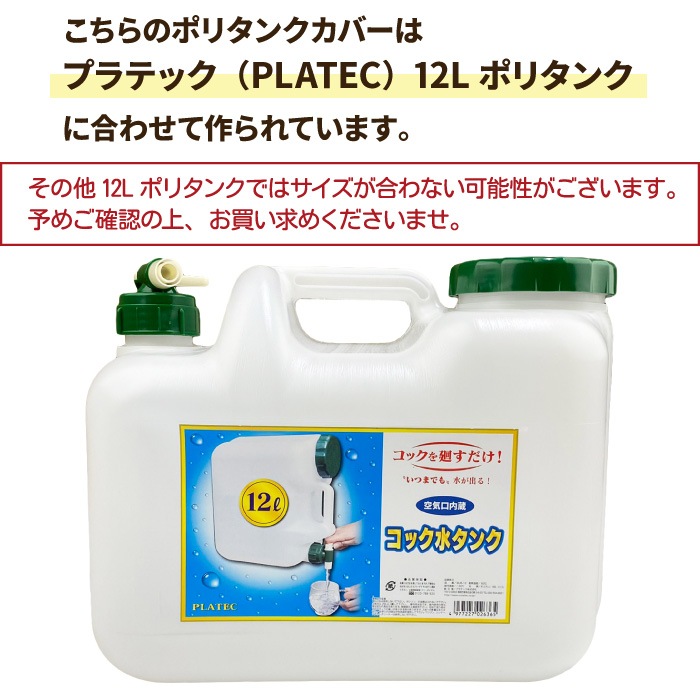 こちらのポリタンクカバーは、プラテック(PLATEC)12Lポリタンクに合わせて作られています。
